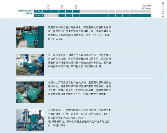 流量:博格破碎機的切割破碎能力取決于介質(zhì)中的固體含量及大小等因素,以及破碎機的切刀的特殊設(shè)計。如,當(dāng)破碎固體含量為3-5%的泥漿、污泥時,可以實現(xiàn)的流量是150m3/h.